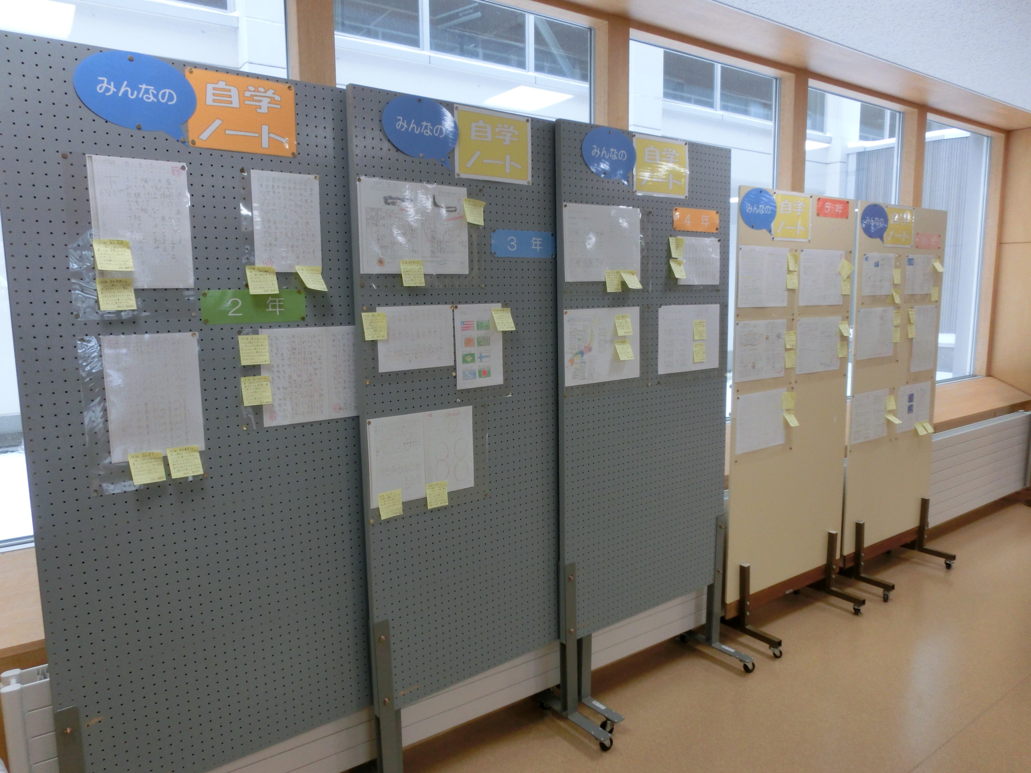 学芸発表会が終わり、これからはますます学習に力を入れていく時期となります。11/25(月)~29(金)の「自学ノートウィーク」に向けて、今日から各学級のお手本となるノートが玄関ホールに展示されています。